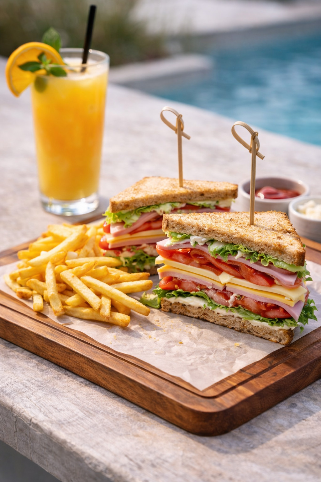 The Pool Bar Menu is designed for relaxed enjoyment throughout the day. You’ll find a selection of familiar favorites, freshly prepared and perfect for sharing or enjoying on your own pace.
